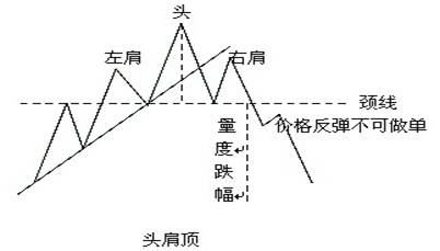 失败的头肩形态:当市场价格突破了头肩形态之劲线时便完全形成了头肩形态,这时,价格不应该再与劲线交叉。再在头肩形态中,一旦劲线被跌破后再发生价格向上突破劲线情况,就发出严重警告,前面的下跌信号可能有误,这就是所谓的失败头肩形态,市场价格可能沿原趋势继续运动。