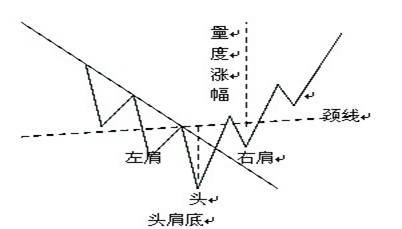 头肩底在长期跌市,再一次下跌形成左肩,由左肩开始反弹至颈线后,新的下跌形成头部,由头部开始价格回调再次下跌形成右肩,当价格再次上升突破颈线后,头肩顶形态基本已经形成,市势也由下降转为上升。